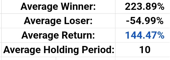 A 223% average winner allows us to sit deep in profits EVEN if we only win four out of every 10 trades.